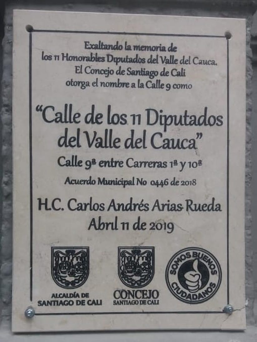 A 17 años del secuestro de los diputados, ocurrido el 11 de abril de 2002, la Asamblea del Valle del Cauca con el apoyo del Centro Nacional de Memoria Histórica, rindieron tributo a las víctimas que dejó esta historia. En el homenaje se contó con la presencia de la gobernadora Dilian Francisca Toro, la presidenta de la Corporación Géssica Vallejo Valencia, el concejal Carlos Andrés Arias Rueda, autor-ponente del Acuerdo que le da nombre a la Calle 9, el arzobispo de Cali Monseñor Darío de Jesús Monsalve Mejía, el alcalde de Cali Maurice Armitage, el comandante de la Policía Metropolitana Br. Gr. Hugo Casas Velásquez, el director del CNMH Darío Acevedo Carmona y los familiares de los diputados.
