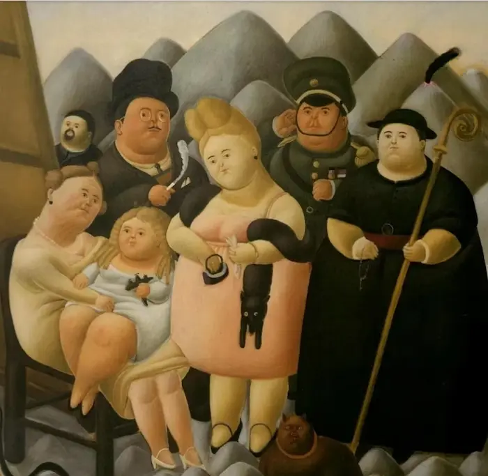 La familia presidencial, el monumental cuadro pintado por Botero en 1967 es y sigue siendo un hito fundamental en su carrera. Y no solo porque en su aparente ingenuidad ofrece una imagen burlona de las figuras arquetípicas que encarnaban el poder efectivo en el “país formal” que mencioné antes. También es fundamental porque condensa de manera admirable lo mejor del estilo que lo ha convertido en un pintor inconfundible. E igualmente, lo es porque es una demostración palmaria de hasta qué punto de maestría había llegado en su meticuloso aprendizaje de los grandes maestros de la pintura europea.