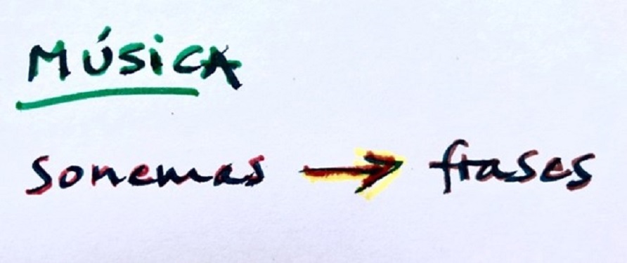 De cualquier manera, se asemeja mucho al lenguaje como tal, a los idiomas, pero también es muy diferente. Ambos se parecen en cuanto a que se crean a partir de unos elementos básicos: En el caso de la música, con sonidos o tonos, o “sonemas”, como los llama Claude Lévi-Strauss[1] y “fonemas”, en el caso del lenguaje. Estos elementos por sí solos, sonemas y fonemas, carecen de significado; lo adquieren cuando se conectan entre sí y son agrupados bajo algún sistema de organización, sea este musical o lingüístico.