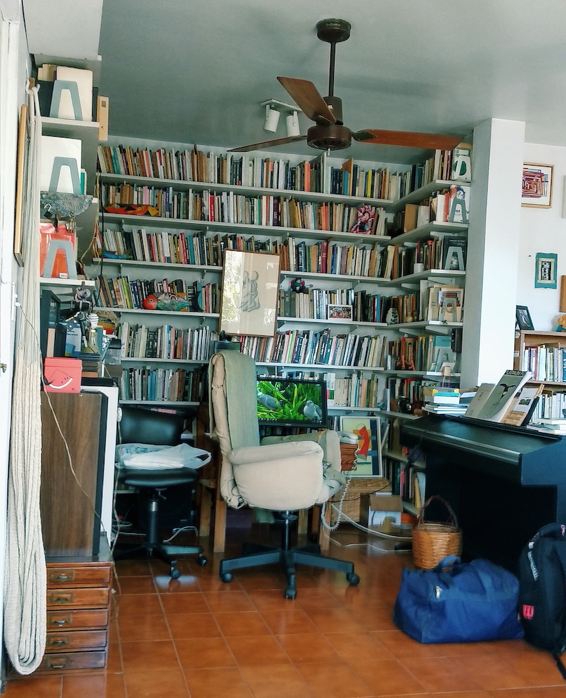 Escenario: una pequeña sala de estar en su departamento junto a la calle Viamonte en Buenos Aires. La sala, iluminada por la luz que entra por las ventanas en una fría tarde de agosto, tiene algunos sofás, armadillos y elefantes de madera decorando los rincones, bibliotecas llenas sobresalen de las paredes, un televisor, y una mesa de centro donde reposan algunos periódicos del día, el primer tomo de la Historia Crítica de la Literatura Mexicana de Rogelio Guedea, un ensayo que titula “La superación de la guerra” sobre la primera muestra individual de su hija Magdalena, e inicia con las palabras de Daniel Buren: “quizá lo único que uno puede hacer tras ver un lienzo como los nuestros es la revolución total”.