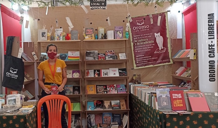 Óscar Hembert Moreno y Alexandra Patiño son los fundadores de la librería, editorial y cafetería Oromo, proyecto inaugurado en enero de 2020 que realiza gestiones culturales con promotores de arte y literatura como Aquelarre y LiteraRuta. “Nosotros arrancamos con la idea de ser una librería, pero sabíamos que de la venta de libros no podíamos vivir, menos en un país donde los libros son sumamente costosos y pocas personas pueden acceder a ellos. Allí empezó la venta de libros y le apostamos al café y a las cervezas artesanales de comunidades vinculadas al conflicto armado del país; de mujeres, de desmovilizados de las autodefensas, de excombatientes de las FARC y de diferentes proyectos productivos que surgieron después del Acuerdo de Paz, etc. Además, teníamos la idea de convertirnos en una editorial y encontramos colectivos muy chéveres como Ediciones El Silencio, Sic Semper Ediciones y Expresión Viva, para aprender del proceso editorial. Como librero también se aprende sobre la cadena del libro, producción, comercialización y todo lo que ocurre antes de pasar al libro. Eso es sumamente vital para el ejercicio de ofrecer textos”, enfatiza Alexandra. Oromo Café distribuye libros de autores locales y nacionales. La apuesta es “que la gente conozca lo que se produce aquí. Hay una variedad de autores a nivel nacional que están haciendo cosas y nadie los lee porque no tienen el capital económico necesario para impulsarse”. Entre los libros publicados por la editorial se encuentran Voces en primera línea y Metamorfosis, compilación que surgió de un concurso de cuento y relato en la ciudad de Cali, con apoyo del Ministerio de Cultura y la Imprenta Comunera. “El proyecto más grande es descentralizar lo cultural y la literatura. Queremos que la gente deje de creer que la Librería Nacional es la única que existe. Hay muchas cosas desde el lado de lo independiente que no se encuentran allá, y la apuesta es expandir la literatura a más espacios de la ciudad”, concluye Alexandra.