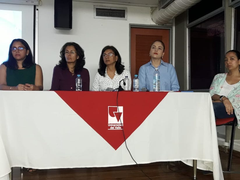 Panelistas del evento Las cifras de la violencia de pareja en Cali, 2018. Acciones locales y regionales para enfrentar las violencias contra las mujeres, realizado el pasado 7 de marzo en la Universidad del Valle.