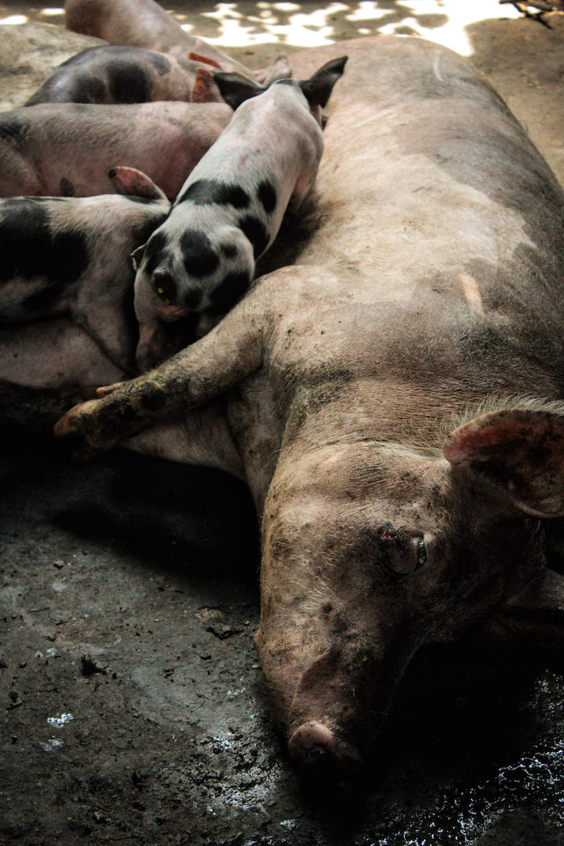 Cría de cerdos de doña Fabiana. Alberga en su casa alrededor de 140, además de algunas vacas y un caballo.